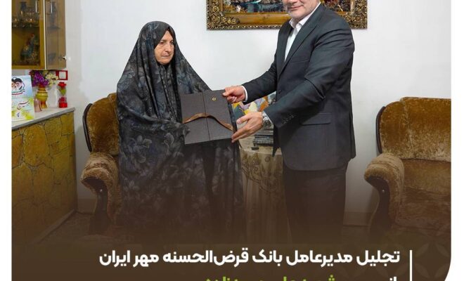 تجلیل مدیرعامل بانک قرضالحسنه مهر ایران از همسر شهید علی صمدزاده