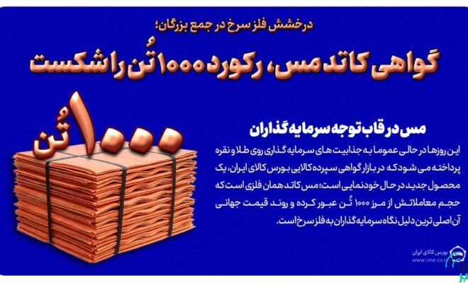درخشش فلز سرخ در جمع بزرگان؛ گواهی مس، رکورد ۱۰۰۰ تن را شکست/مس در قاب توجه سرمایه گذاران