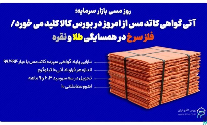 روز مسی بازار سرمایه؛ آتی گواهی کاتد مس از امروز در بورس کالا کلید می خورد/ فلز سرخ در همسایگی طلا و نقره