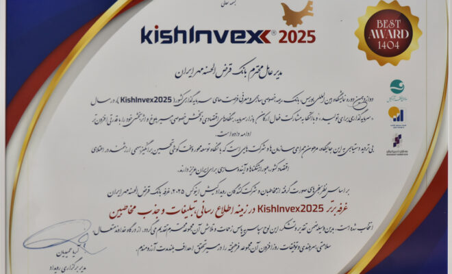 • کسب نشان غرفه برتر توسط بانک قرض‌الحسنه مهر ایران در جذب مخاطب کیش اینوکس ۲۰۲۵