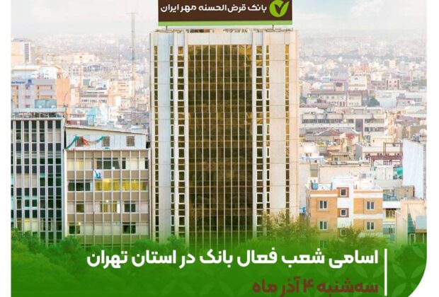 اسامی شعب فعال بانک در استان تهران – سهشنبه ۴ آذر ماه