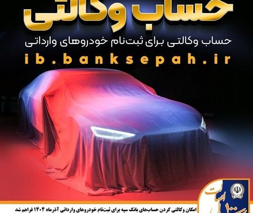 امکان وکالتی کردن حسابهای بانک سپه برای ثبتنام خودروهای وارداتی آذرماه ۱۴۰۴ فراهم شد