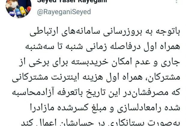 پایگاه خبری تریتا نیوز،مدیرکل ارتباطات همراه اول: هزینه اینترنت کلیه مشترکانی که مصرفشان بخاطر بروزرسانی سامانهها و درگاههای ارتباطی با تعرفه آزاد محاسبه شده، با ... -