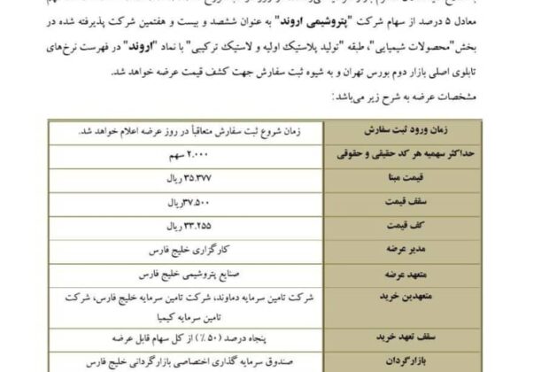 اول دیماه؛ عرضه اولیه سهام پتروشیمی اروند/ بازار سرمایه به استقبال سهم جذاب و سودآور جدید از هلدینگ خلیجفارس میرود