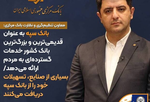 معاون تنظیم‌گری و نظارت بانک مرکزی:بانک سپه به عنوان قدیمی‌ترین و بزرگ‌ترین بانک کشور خدمات گسترده ای به مردم ارائه می‌دهد/بسیاری از صنایع، تسهیلات خود را از بانک سپه دریافت می‌کنند