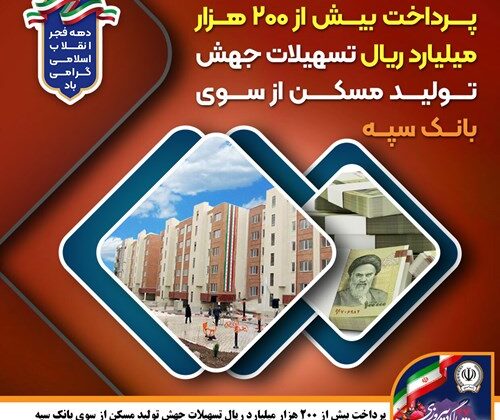 پرداخت بیش از ۲۰۰ هزار میلیارد ریال تسهیلات جهش تولید مسکن از سوی بانک سپه
